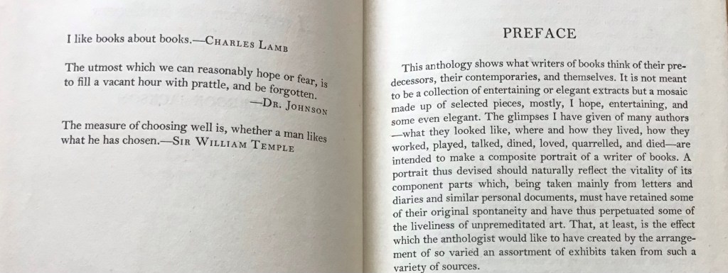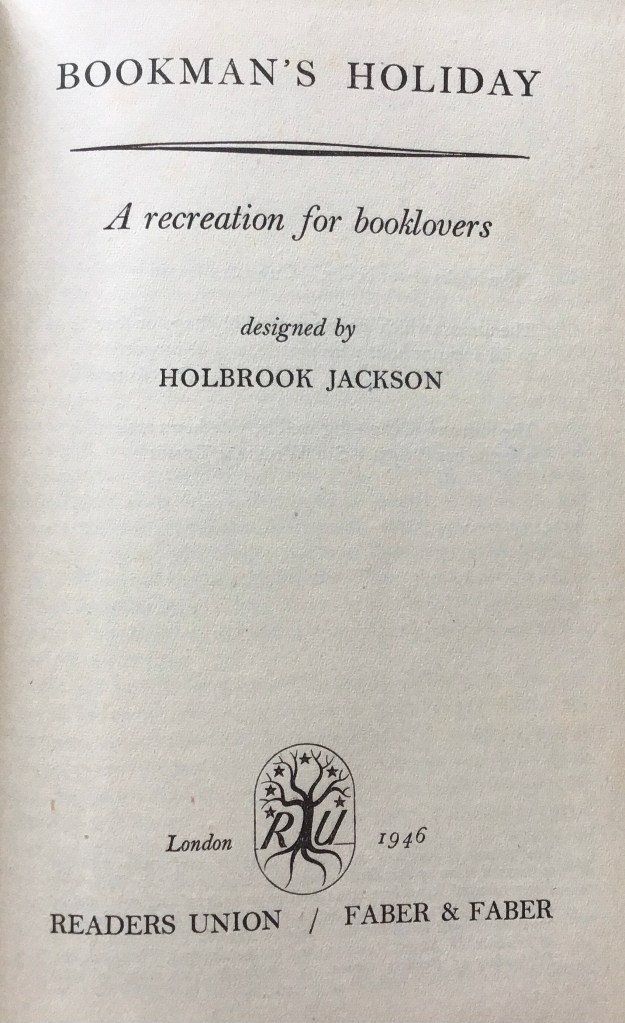 Holbrook Jackson (1874-1948) was a writer and publisher whose output included numerous titles on the world of books and reading including The Anatomy of Bibliomania (1930), Maxima of Books and Reading (1934) and the Pleasures of Reading (1948). Bookman’s Holiday (above) was first published in 1945 and captures the extent of his reading and knowledge.