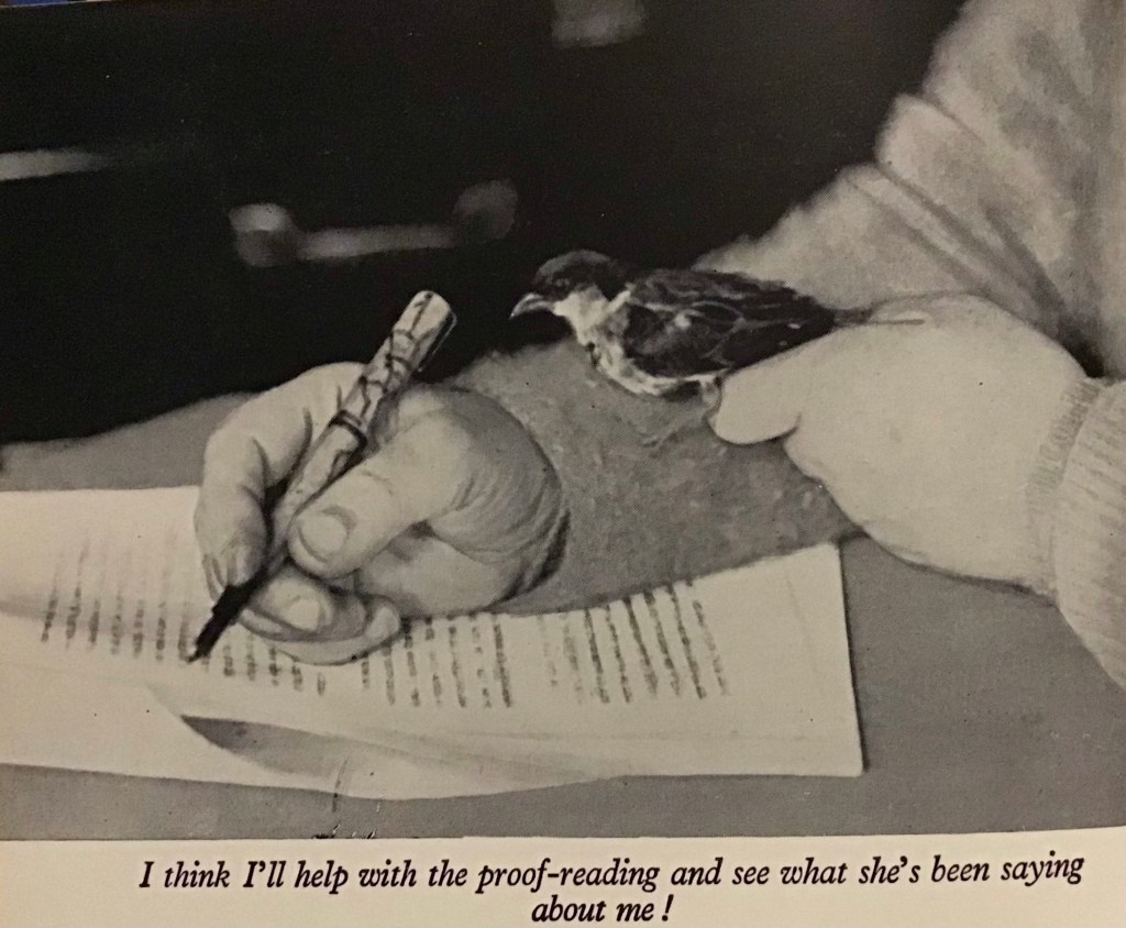 Published by Frederick Muller in 1953 this endearing book captures the true story of a sparrow fallen from its nest, its rescue from her doorstep by a widowed ARP warden and her care for the tiny bird throughout its life. The book enjoyed considerable success; reprinted four times in 1953, three times in 1954 and had reached its eighteenth impression by October 1968.